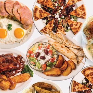 Gyro Meat, Tomatoes, Onions, Lettuce, Tzatziki Sauce & Warm Pita Bread. Served with Greek Roasted Potatoes and Greek Salad